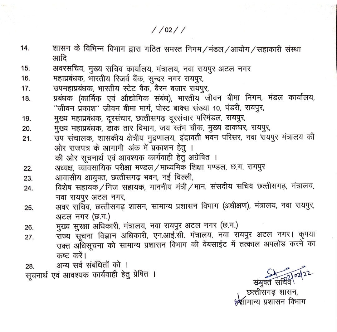 मुख्यमंत्री के घोषणा के बाद छत्तीसगढ़ में प्रति सप्ताह पांच कार्य दिवस प्रणाली लागू।