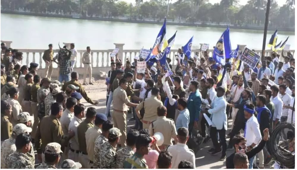 भीम आर्मी के संस्थापक चंद्रशेखर के नेतृत्व में रायपुर में अजा वर्ग को 12 % आरक्षण को लेकर हुआ प्रदर्शन।