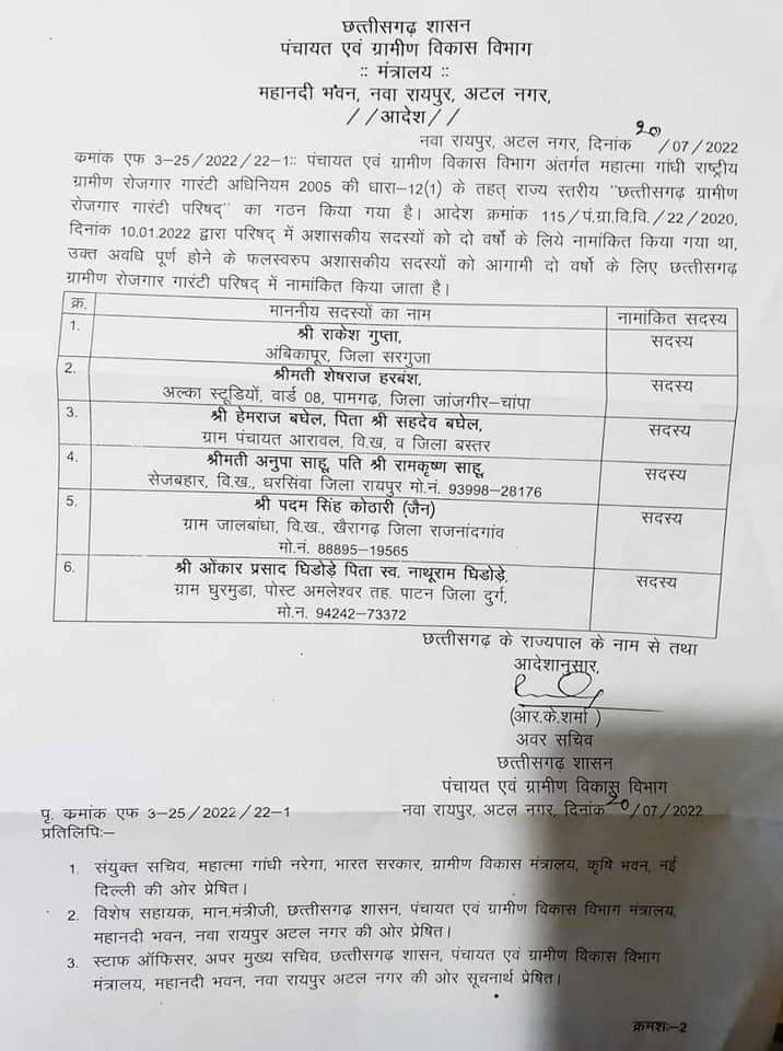 अजा महिला कांग्रेस की प्रदेश अध्यक्ष शेषराज हरबंश छग ग्रामीण रोजगार गारंटी परिषद के बनाए गए सदस्य…