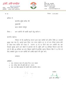 इंजीनियर रवि पाण्डेय ने धान खरीदी के लिए 15 दिन अधिक समय मांगने मुख्यमंत्री को लिखा पत्र।
