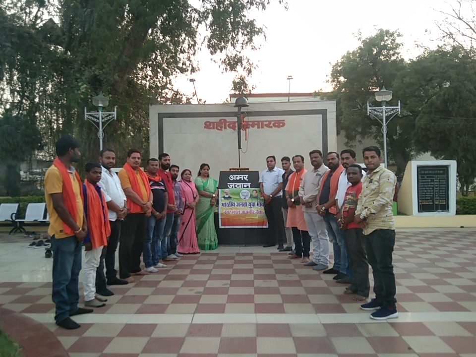 जांजगीर-चांपा::जाज्वल्य न्यूज़::आज दिनांक 23 मार्च को जिला जांजगीर के कचहरी चौक में स्थित शहीद स्मारक में भारतीय जनता युवा मोर्चा एवं भाजपा नगर मंडल जांजगीर नैला के द्वारा स्वतंत्रता संग्राम सेनानी भगत सिंह सुखदेव गुरुराज को आज 23 मार्च 1931 को अंग्रेजों द्वारा फांसी दी गई थी आज 23 मार्च को शहीद दिवस मनाते हुए तीनों शहीदों को श्रद्धा सुमन श्रद्धांजलि अर्पित कर नमन किया गया इस अवसर पर प्रदेश कार्यसमिति प्रशांत सिंह ठाकुर, अमर सुल्तानिया भाजपा जिला उपाध्यक्ष, आशुतोष गोस्वामी अध्यक्ष भाजपा नगर मंडल, दिनेश राठौर अध्यक्ष भाजयुमो जांजगीर नैला, सोनू यादव एवं गोलू दुबे भाजयुमो नगर महामंत्री, अमित यादव(पार्षद), रितेश राठौर, संतोषी दुबे महामंत्री जिला महिला मोर्चा, प्रेमलता कौशिक, प्रदीप राठौर, मोनू अग्रवाल, सतीश शर्मा, गजेंद्र (गज्जू), जैकी शर्मा ,विनोद यादव, अजय कौशिक एवं भाजपा के सभी पदाधिकारी एवं युवा मोर्चा के पदाधिकारी कार्यकर्ता उपस्थित रहे|