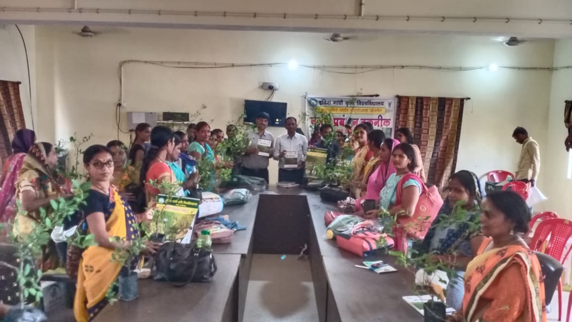 कार्यक्रम को संबोधित करते हुए कौशिक ने उपस्थित स्व सहायता समूह की महिलाओं को वैज्ञानिक पद्धति से नर्सरी लगाने ,साग सब्जी का उत्पादन करने व फलदार पौधों की खेती करने पर जोर डाला गया l उन्होंने स्व सहायता समूह की महिलाओं को यह समझाया की स्व सहायता समूह का मतलब आपको अपनी स्वयं की मदद करना है अपनी मदद करते हुए अपने समूह को आगे बढ़ाना एवं आर्थिक विकास की ओर ले जाना है l तकनीकी सत्र में केंद्र के वैज्ञानिक डॉ राजीव दीक्षित ने नर्सरी प्रबंधन की वैज्ञानिक पद्धति की जानकारी देते हुए बताया कि नर्सरी तीन प्रकार की होती है खरीफ में लगने वाली रेज़ेड बेड नर्सरी रबी सीजन में लगाने हेतु फ्लैट बेड नर्सरी एवं जहां तेज गर्म हवाएं चलती हैं वहां के लिए संकन् बेड नर्सरी l उन्होंने नर्सरी हेतु स्थल का चुनाव, पौधा लगाने हेतु गड्ढों का साइज, उर्वरक प्रबंधन, प्रवर्धन तकनीक आदि की जानकारी स्व सहायता समूह की महिलाओं को प्रदान की l साथ ही साथ हाईटेक नर्सरी ,शेड नेट हाउस ,पाली हाउस की भी जानकारी उनके द्वारा प्रदान की गई l केंद्र के वैज्ञानिक शशि कांत सूर्यवंशी ने आधुनिक सिंचाई की विधियां टपक सिंचाई स्प्रिंकलर सिंचाई फर्टिगेशन आदि की जानकारी उपस्थित महिलाओं को दी l प्रशिक्षण मे विभिन्न गांव से आई गोठन समिति की महिलाएं जिसमें ग्राम बार गांव, लोहरसी ,मेउ, मूलमुला केसला एवं अन्य गांव से गोठlन की स्व सहायता समूह की महिलाओं ने भाग लिया l केंद्र द्वारा महिलाओं को हजारा, खुरपी स्प्रेयर एवं पेड़ पौधे के साथ साथ कृषि पंचांग एवं कृषि दर्शिका का वितरण किया गयाl प्रशिक्षण को सफल बनाने में उद्यानिकी विभाग से संदीप जयसवाल एवं संजय पटेल का विशेष योगदान रहाl