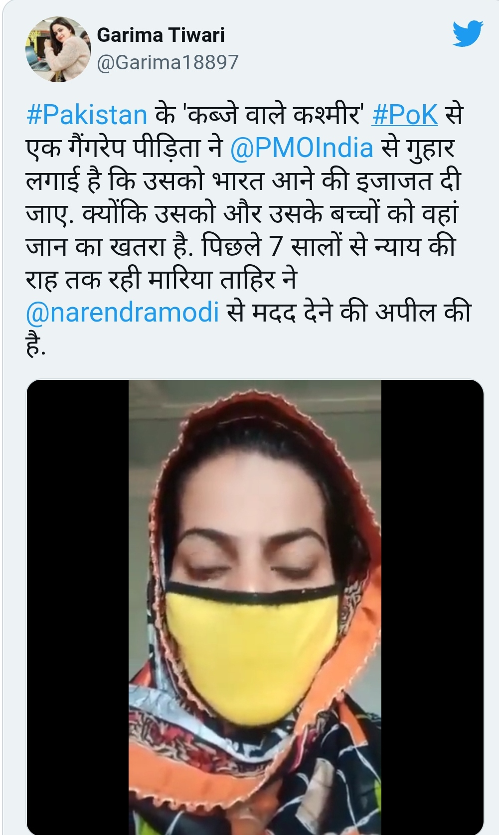 गैंगरेप की पीड़िता ने पीएम मोदी से लगाई गुहार मुझे भारत आने की इजाजत दें POK में मेरे बच्चे और मेरी जान को खतरा है।