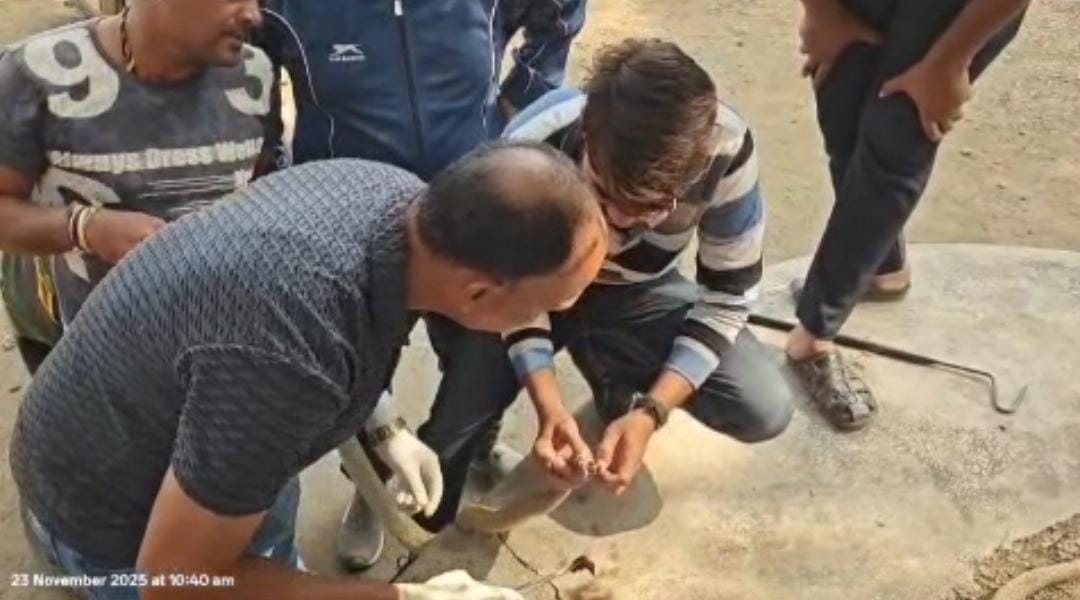 जांजगीर-चाम्पा। जिला मुख्यालय के समीपस्थ ग्राम पेंड्री में घायल अवस्था में एक कोबरा मिलने की सूचना पर सर्प मित्रों की टीम तत्काल सक्रिय हुई। मौके पर पहुंचकर सर्प मित्रों ने सावधानीपूर्वक कोबरा को रेस्क्यू किया और उसे उपचार के लिए सुरक्षित रूप से बाहर निकाला।रेस्क्यू के दौरान पशु चिकित्सक श्यामलाल ओगरे की देखरेख में कोबरा का प्राथमिक उपचार किया गया। पूरी प्रक्रिया स्नेक रेस्क्यू टीम के प्रमुख स्नेक मेन अनुराग टिंकू शुक्ला के नेतृत्व में संचालित हुई। टीम के सदस्य भोला राठौर, शैल राठौर, पप्पू शिवा, विक्की सिंह, पिंटू राठौर, संदीप सिंह और राजू यादव ने रेस्क्यू ऑपरेशन में सक्रिय भूमिका निभाई। सभी सदस्यों के समन्वय और सतर्कता के कारण कोबरा को सफलतापूर्वक स्वस्थ कर सुरक्षित प्राकृतिक वातावरण में छोड़ा गया।सर्प मित्रों की यह टीम अब तक हजारों सांपों का रेस्क्यू कर चुकी है, जो वन्यजीव संरक्षण और मानव–सर्प संघर्ष को कम करने में निरंतर महत्वपूर्ण योगदान दे रही है।यह प्रयास न केवल जागरूकता का प्रतीक है बल्कि क्षेत्र में सुरक्षित और संवेदनशील पर्यावरण निर्माण की दिशा में बड़ा कदम भी है।