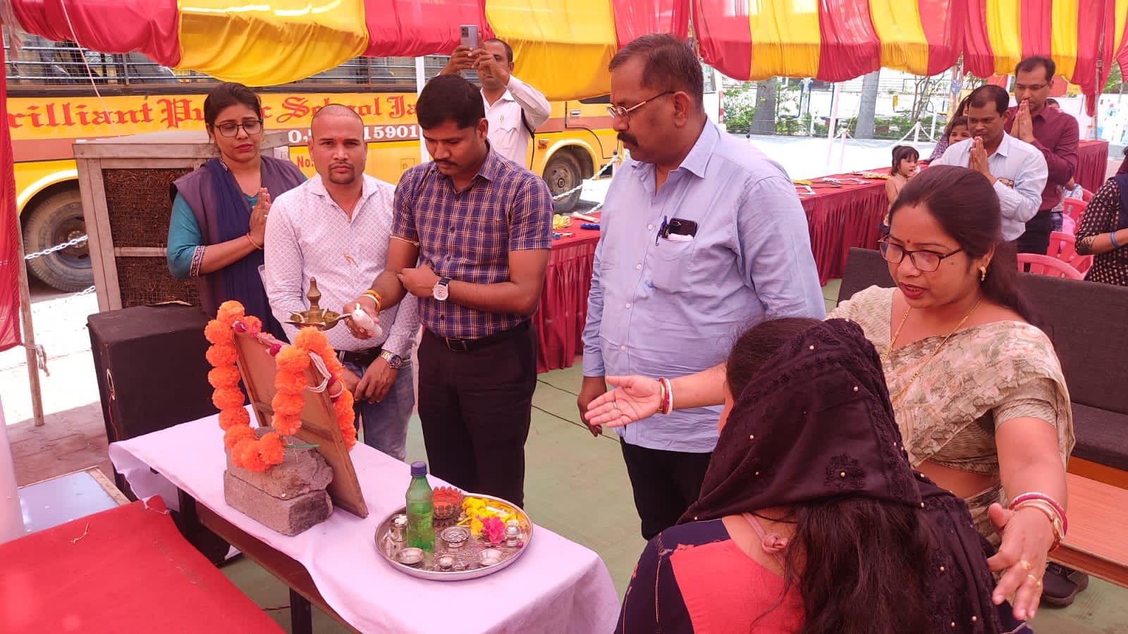 यह कार्यक्रम संदीप मित्तल (डीएसपी यातायात जांजगीर-चांपा) के मुख्य आतिथ्य में संपन्न हुआ व डायरेक्टर आलोक अग्रवाल तथा प्राचार्या श्रीमती सोनाली सिंह जी के निर्देशन में आयोजित किया गया। प्रथम अभिभावक श्रीमती पूनम जायसवाल का प्रथम अतिथि के रूप में सम्मान किया गया। सर्वप्रथम अतिथि संदीप मित्तल (डीएसपी यातायात जांजगीर-चांपा) व संतोष धामेचा (डयरेक्टर, यूसीमास) को पुष्प गुच्छ से स्वागत किया गया। मित्तल ने कार्यक्रम ब्रिलियंट पब्लिक स्कूल के संचालक व प्राचार्या को धन्यवाद दिया और श्लोक के माध्यम से कहा ‘‘सर्वेभवन्तु सुखिनः सर्वे सन्तु निरामयाः सर्वे भद्राणि पश्यन्तु मा कश्चिद् दःुखग्भाग भवेत’’ व ‘‘गुरूर्ब्रम्हा गुरूर्विष्णःु गुरूर्देवो महेश्वरः गुरूः साक्षात् परब्रम्ह तस्मै श्री गुरूवे नमः’’ सभी सुखी रहें सभी निरोग रहें और गुरू के महत्व को सक्षेप मेें बताया और अपनी बीती बातें याद करके बच्चों को प्रोत्साहित किया कि आपके पास पूरी सूविधा है जिसका सही उपयोग कर आप अपनी मंजिल हासिल कीजिये और सभी की कुशलता की कामना किए।