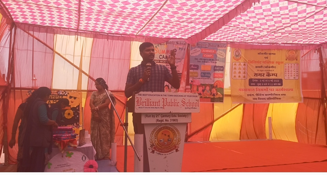 समूह ‘अ‘ कक्षा- पहली से पाचवीं तक के छात्र-छात्राओं तथा समूह ‘ब‘ में कक्षा- आठवीं से दसवीं तक छात्र-छात्राओं ने सांस्कृतिक कार्यक्रम की प्रस्तुति दी जिसमें सव्रप्रथम कक्षा दसवी के छात्रा द्वारा स्वागत गीत (वाणीप्रिया व सौम्या तिवारी), सामूहिक योगा डांस (सौम्या, एंजल, आस्था पटेल, ओजल कसेर, आसी अग्रवाल, मुक्तिका, अनुष्का शुक्ला, डिंपल केवट आदि छात्राओं) द्वारा प्रस्तुत किया गया, कक्षा दसवी की छात्रा वाणीप्रिया द्वारा गीत तथा बाल श्रमिक उन्मुलन एवं शिक्षा के प्रति प्रोत्साहन पर सामूहिक नृत्य बच्चों के द्वारा प्रस्तुत किया गया। बारह दिवसीय समर कैंप में उपस्थित छात्र-छात्राओं को खेल-खेल में उनके मानसिक, बौद्धिक तथा शारीरिक विकास हुआ। विभिन्न कलायों की जानकारी व प्रशिक्षण से बच्चों के कौशल में वृद्धि हुई तथा पढ़ाई के अतिरिक्त अन्य कलाओं के प्रति रूझान हेतु उत्साहवर्धन किया गया। ग्रीष्मकालीन अवकाश के अंतर्गत आयोजित समर कैंप का उद्देश्य बच्चों में उनकी प्रतिभा व कौशल क्षमता में वृद्धि करना एवं उनकी कला क्षमता के अनुरूप प्रतिभा का विस्तार करना है। कैम्प के समापन समारोह में आर्ट गैलरी में बच्चों द्वारा बनाए गए विभिन्न माॅडलों, पेन्टिगस् एवं कार्ड का प्रदर्शन किया गया। विद्यार्थियों को यातायात विभाग जिला-जाँजगीर-चांपा द्वारा ड्राॅईंग प्रतियोगिता के सभी प्रतिभागीयों को उपहार दिया गया एवं ब्रिलियंट पब्लिक स्कूल प्रंबधन द्वारा प्रशस्ति पत्र, जूस व फ्रूट सलाद का वितरण किया गया। कार्यक्रम का संचालन सुश्री प्रियंका शर्मा के द्वारा किया गया। शिक्षिका मिनीमोल थाॅमस द्वारा धन्यवाद ज्ञापन प्रेषित किया गया। विद्यालय में उपस्थित अभिभावकों एवं स्कूल प्रबंधन व स्टाफ का सराहनीय योगदान रहा। इस पूरे कार्यक्रम का मीडिया पार्टनर जाज्वल्य न्यूज जांजगीर चांपा रहा है।