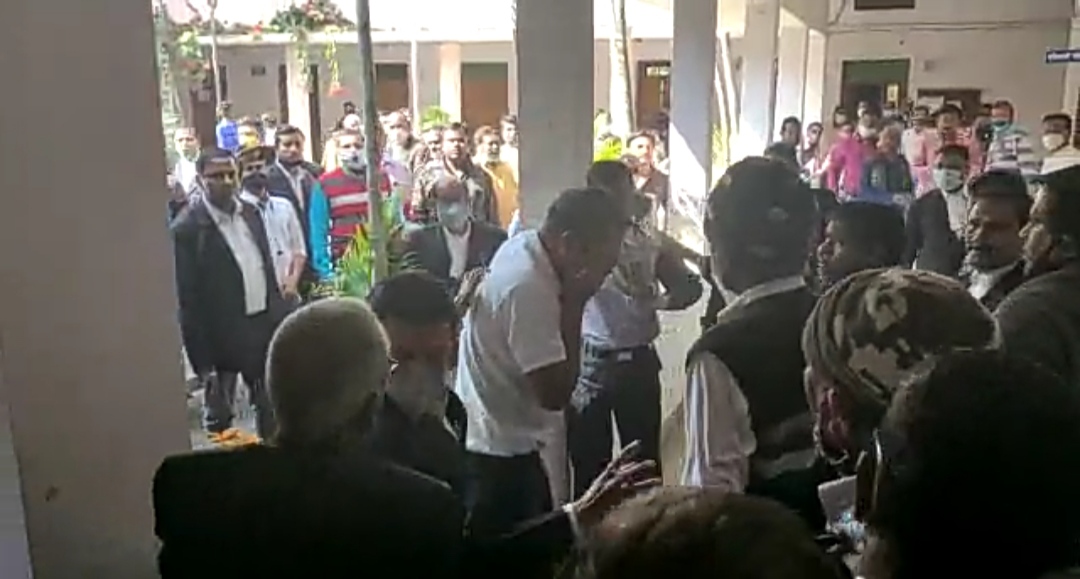 जांजगीर-चांपा::जाज्वल्य न्यूज़::रायगढ़ में कतिपय अधिवक्ताओं द्वारा तहसील में पदस्थ लिपिक को पैसा के लेनदेन और फाइल को आगे बढ़ाने के नाम पर कहा सुनी हो गया उसे वकीलों द्वारा गाली गलौज करते हुए मारपीट पर उतारू हो गए इस दौरान बीच-बचाव करने आये नायब तहसीलदार विक्रांत सिंह राठौर के साथ किए गए हाथा पाई करने का वीडियो शोशल मिडिया में वायरल जमकर वायरल हुआ।