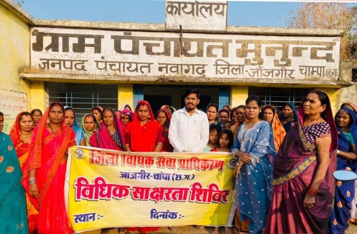 जांजगीर-चाम्पा। जिला विधिक सेवा प्राधिकरण जांजगीर के अध्यक्ष शक्ति सिंह राजपूत जिला एवं सत्र न्यायाधीश जांजगीर एवं सचिव मनोज कुशवाहा जिला विधिक सेवा प्राधिकरण जांजगीर के दिशा निर्देशानुसार राष्ट्रीय विधिक सेवा दिवस के अवसर पर ग्राम पंचायत मुनुंद में विधिक जागरूकता शिविर का आयोजन किया जिसमें अविनाश राठौर अधिवक्ता द्वारा ग्रामीणों को राष्ट्रीय विधिक सेवा प्राधिकरण की स्थापना उनके महत्व को बताया तथा मौलिक अधिकार, साइबर क्राइम, मोटर एक्ट अधिनियम व अन्य कानूनी जानकारी दिया तथा मंजू देवांगन पी एल व्ही के द्वारा राष्ट्रीय विधिक सेवा प्राधिकरण अधिनियम 1987 में गठन एवं 9 नवंबर को हर साल विधिक प्राधिकरण दिवस बनाने के उद्देश्य को बताया कि समाज की कमजोर वर्गों को मुक्त कानूनी सहायता प्रदान करना है सभी नागरिकों के लिए उचित निष्पक्ष और न्याय प्रक्रिया के बारे में अवगत कराया एवं नालसा के विभिन्न योजनाओं वरिष्ठ नागरिकों के विधिक सेवा, मौलिक अधिकार, नशा पीड़ितों को विधिक सेवाएं, गरीबी उन्मूलनी योजनाएं ,लैंगिक उत्पीड़न अधिनियम, महिला संरक्षण अधिनियम, बाल विवाह, हमरा अंगना, नि.शुल्क अधिवक्ता, जागृति, डॉन, आशा इकाई अभियान, मध्यस्थता, लोक अदालत राजीनामा व हेल्पलाइन नंबर 15100 आदि के बारे में जानकारी से अवगत कराया जिसमें पंचगढ़ श्रीमती अनिशा कश्यप, पंचराम एवं स्व. सहायता समूह के महिलाएं उपस्थित रही।