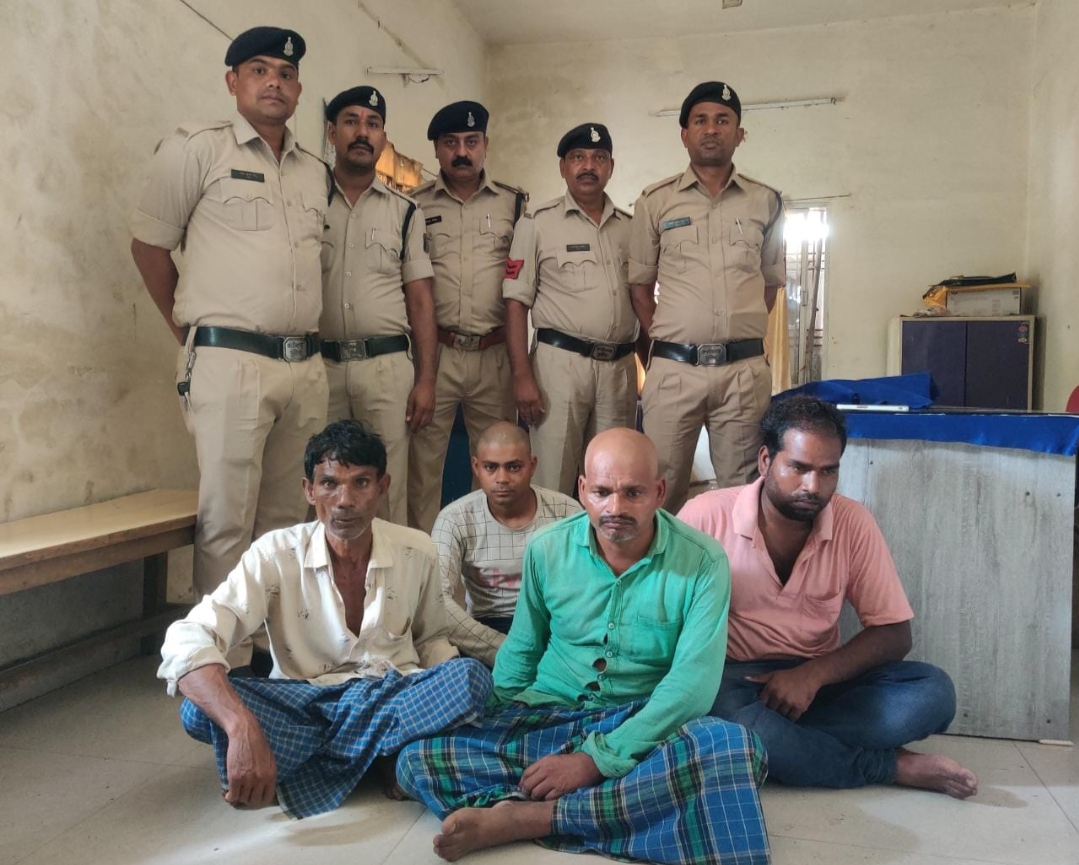 मुखबिर सूचना पर आरोपियों के निवास स्थान पर घेराबंदी कर आरोपी (01) रवि कुमार कुर्रे उर्फ अशोक उम्र 25 वर्ष (02) गोरखनाथ कुर्रे उर्फ बैगा उम्र 38 वर्ष (03) परदेसी कुर्रे उम्र 60 वर्ष सभी साकिनान ठड़गाबहरा बलौदा थाना बलौदा (04) धर्मेंद्र कुमार दिवाकर उर्फ भोको उम्र 30 वर्ष साकिन करगिरी धौराभाठा थाना हरदी बाजार जिला कोरबा एवं अन्य लोगों के साथ मिलकर घटना कारीत करना स्वीकार किए जाने से दिनांक 15.07.2023 को आरोपी 01) रवि कुमार कुर्रे उर्फ अशोक उम्र 25 वर्ष (02) गोरखनाथ कुर्रे उर्फ बैगा उम्र 38 वर्ष (03) परदेसी कुर्रे उम्र 60 वर्ष सभी साकिनान ठड़गाबहरा बलौदा थाना बलौदा (04) धर्मेंद्र कुमार दिवाकर उर्फ भोको उम्र 30 वर्ष साकिन करगिरी धौराभाठा थाना हरदी बाजार जिला कोरबा को गिरफ्तार कर न्यायिक रिमांड पर भेजा गया, है तथा विधि से संघर्षरत बालक को बाल संप्रेक्षण गृह कोरबा भेजा गया है।