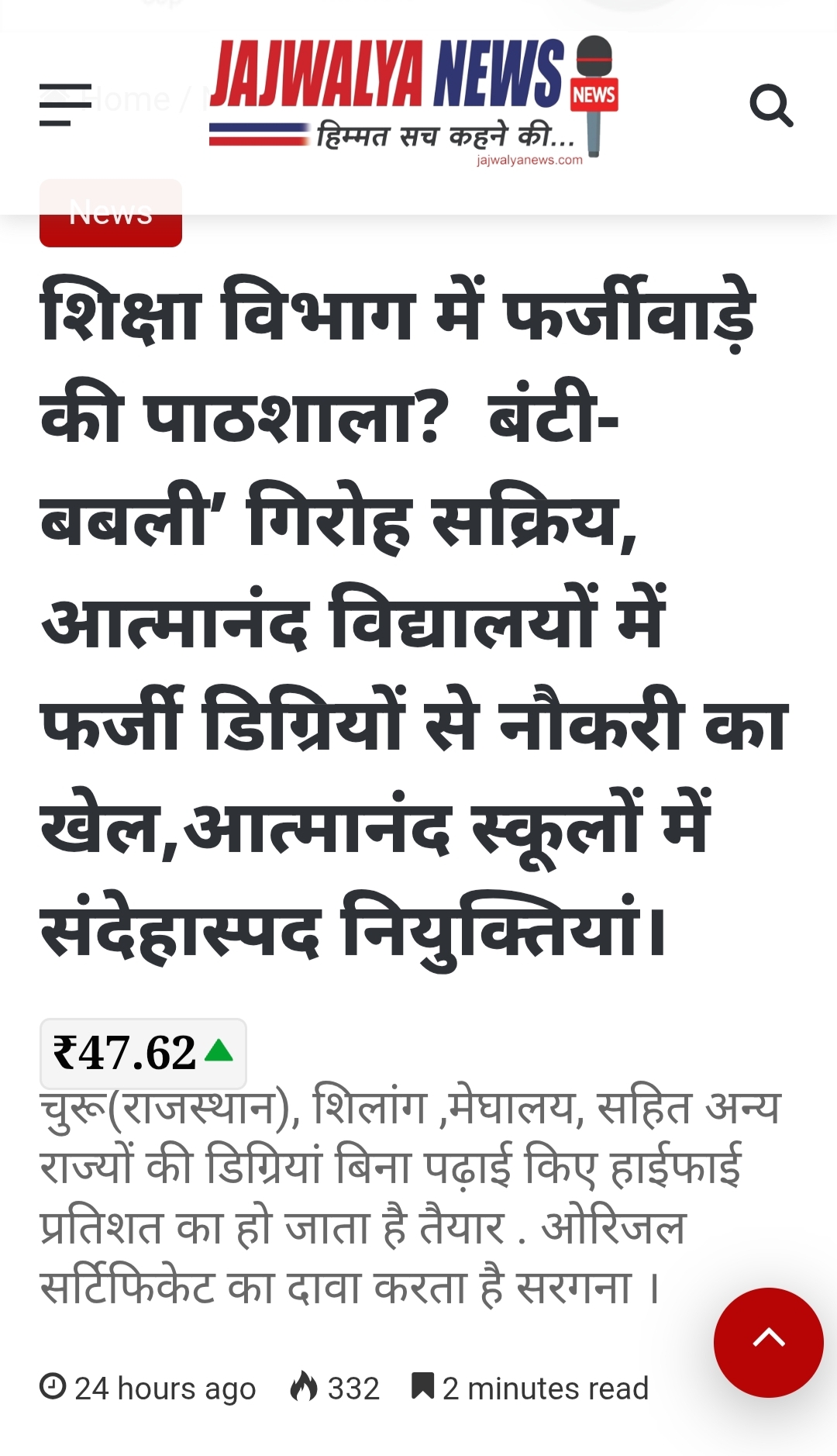 सीरीज नम्बर 02 रायपुर : छत्तीसगढ़ के शिक्षा विभाग में कथित तौर पर वर्षों से चल रहे एक बड़े फर्जीवाड़े की परतें अब सामने आने लगी हैं। सूचना के अधिकार (आरटीआई) के तहत प्राप्त जानकारियों के आधार पर यह आरोप लगाए जा रहे हैं कि जांजगीर-चांपा जिले सहित शक्ति, रायगढ़ और कोरबा में दर्जनों लोग दूसरे राज्यों से प्राप्त संदिग्ध डिग्रियों के आधार पर सरकारी नौकरी कर रहे हैं।जानकारी के अनुसार, कोई एलबी संवर्ग में व्याख्याता पद पर पदस्थ है तो कोई खेल एवं व्यायाम शिक्षक के रूप में कार्यरत है। अब यही कथित फर्जीवाड़ा स्वामी आत्मानंद उत्कृष्ट विद्यालयों तक पहुंचने का आरोप लगाया जा रहा है। शिक्षा के मंदिर कहे जाने वाले इन स्कूलों में योग्यता की जगह कथित तौर पर सेटिंग और लेन-देन के आधार पर नियुक्तियां होने की बातें सामने आ रही हैं।