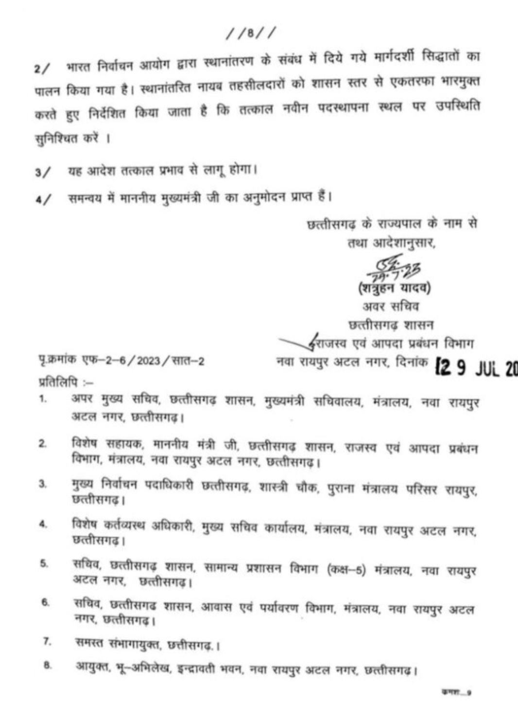 छत्तीसगढ़ गुच्छों में हुआ तबादला 132तहसीलदारों सूची जारी ।