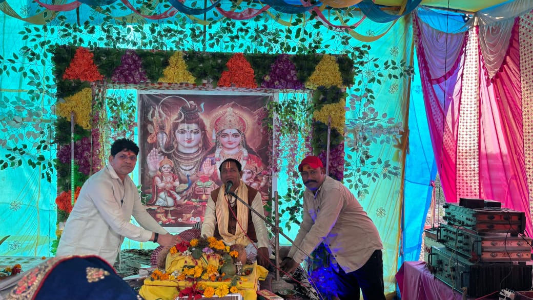 महंत में चल रहे शिव महापुराण कथा ज्ञान यज्ञ एवं रुद्राभिषेक में शामिल हुए सभापति