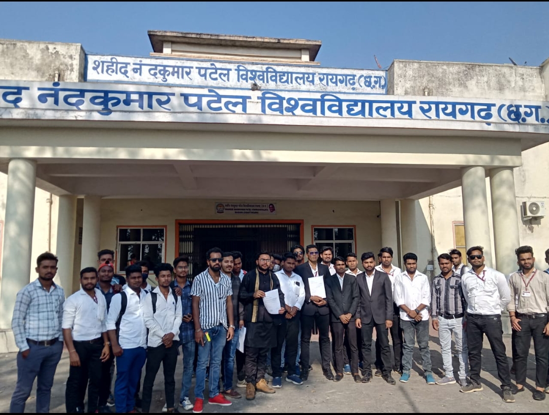 विधि के छात्रों ने असंतोष जनक परीक्षा परिणाम के संबंध में शहीद नंदकुमार पटेल विश्वविद्यालय रायगढ़ को सौंपा ज्ञापन ।