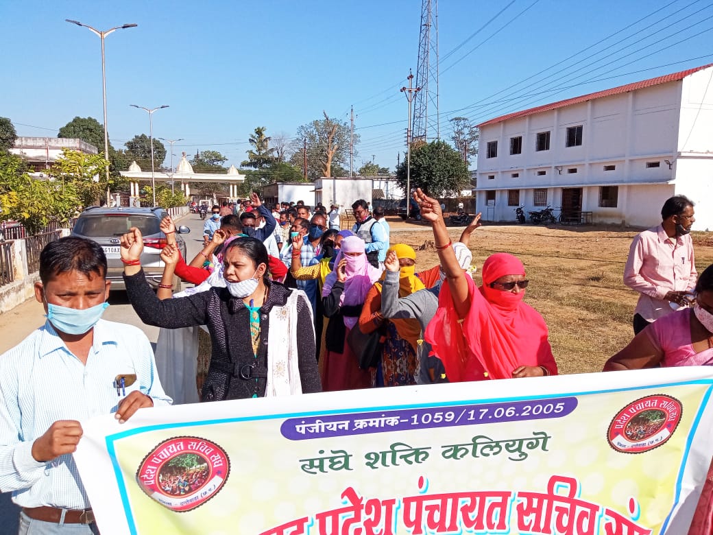 प्रदेश पंचायत सचिव संघ शासकीयकरण सहित 7 सूत्रीय मांग को लेकर जिला में निकाली रैली।