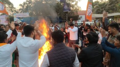 “बीजेपी एजेंट” बयान के विरोध में उबाल, कचहरी चौक में युवा मोर्चा का प्रदर्शन, पुतला दहन।