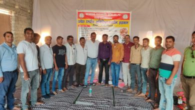 हड़ताल के दूसरे दिन प्रांताध्यक्ष भागवत कश्यप का जांजगीर चांपा जिला के पंडाल स्थल।