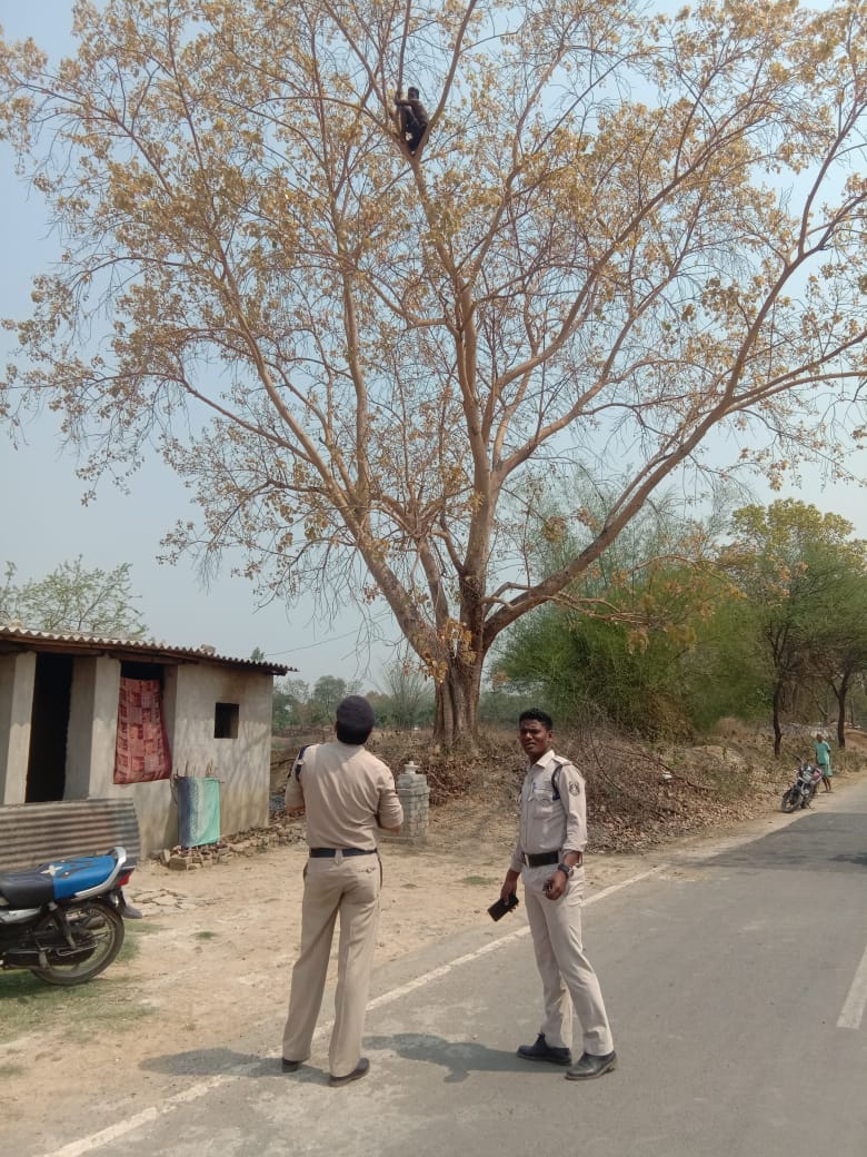 कर्ज चुकाने कहा तो 40 फीट ऊंचाई पीपल पेड़ में 7 घंटों से चढ़ा युवक दे रहा सुसाइड करने धमकी।